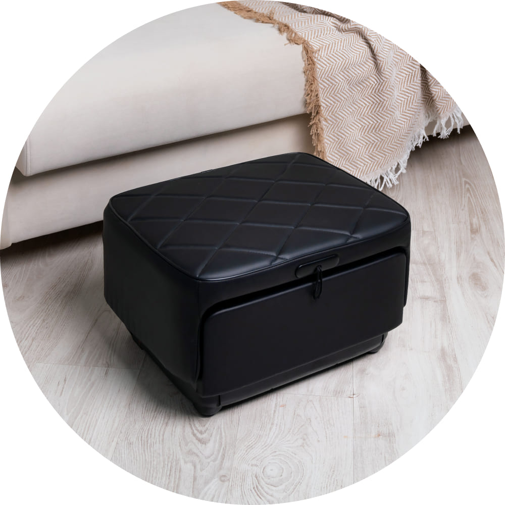 Функцию прогрева можно включить не только во время массажа, но и в автономном режиме. Закрытый пуф послужит отличной подставкой для ног с мягким теплом.